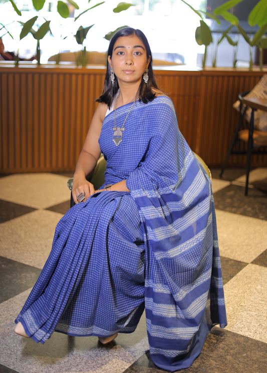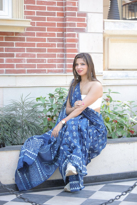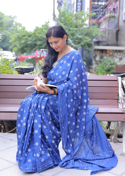 NIDHI_ Indigo Natural Dye Dabu HBP Mul Cotton Saree