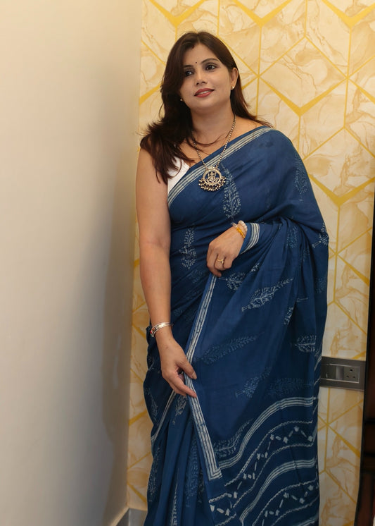 NEHA_Indigo Natural Dye Dabu HBP Mul Cotton Saree