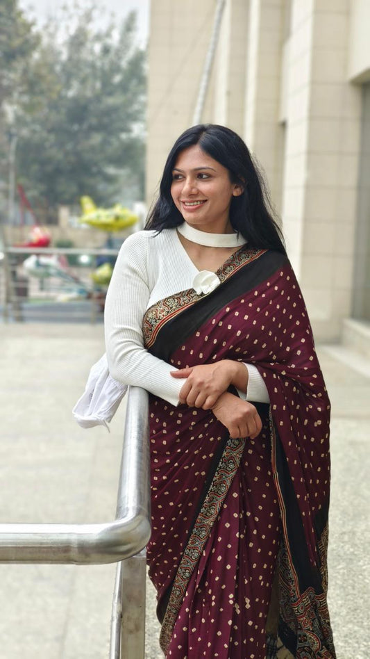 KRITIKA : AJRAKH BANDHEJ TISSUE MODAL SILK SAREE