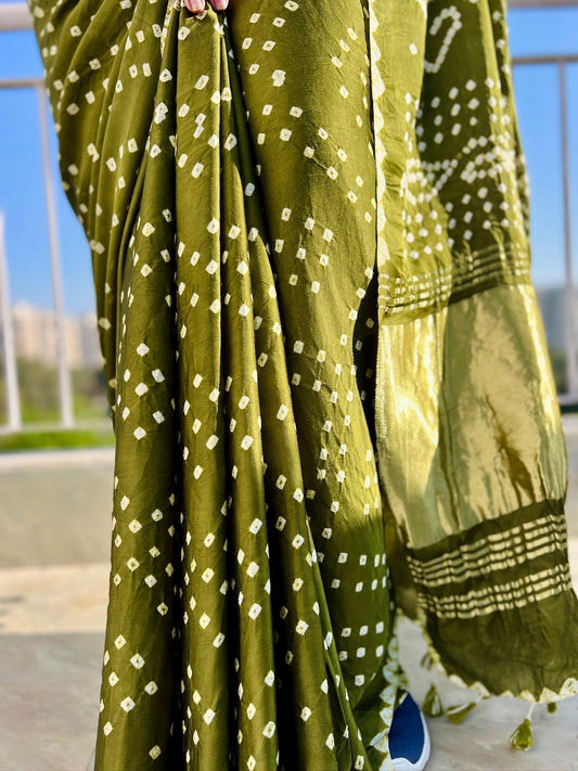 HEENA : BANDHEJ MODAL SAREE WITH TISSUE PALLA