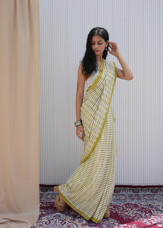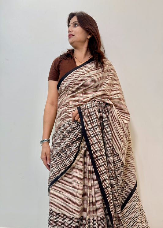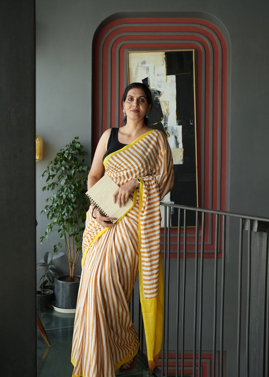 SAANVI_Heritage Hand Block Printed Pure Cotton Striped Saree