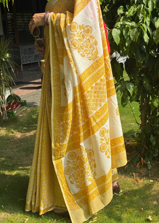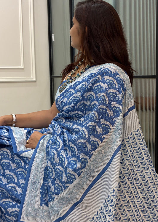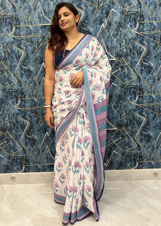 SALONI_Heritage Sanganeri Hand Block Printed Pure Cotton Saree