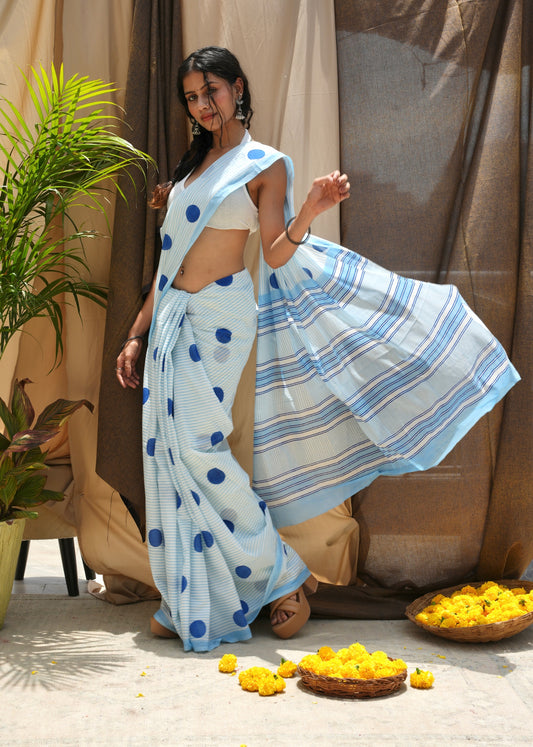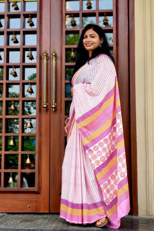 GAURI_Heritage Hand Block Printed Pure Cotton Striped Saree