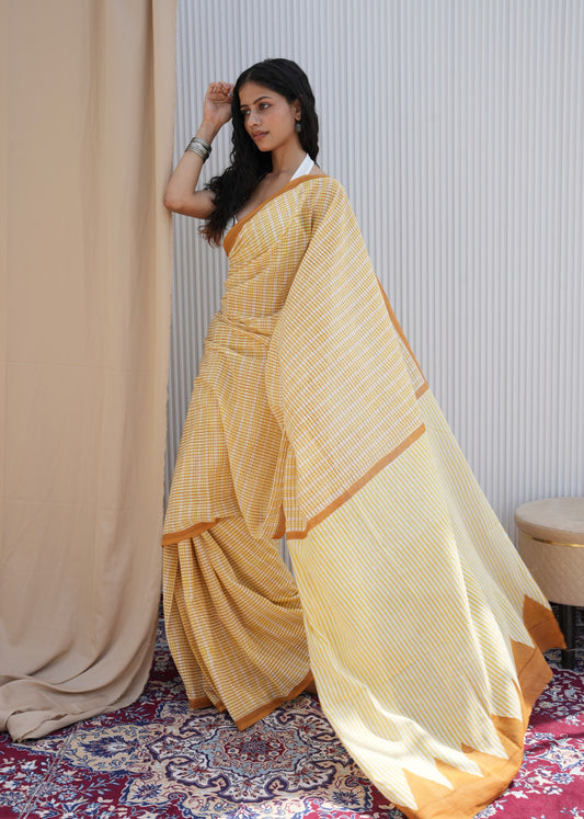 CHHAYA_Heritage Bagru Hand Block Printed Pure Cotton Checks Saree