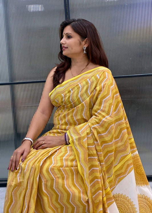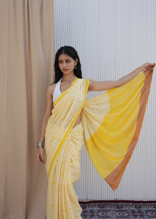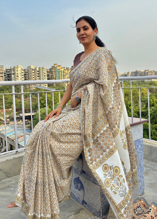 Oorja_Heritage Hand Block Printed Pure Cotton Saree