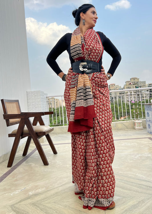 RACHNA _Heritage Bagru Hand Block Printed Pure Cotton Saree