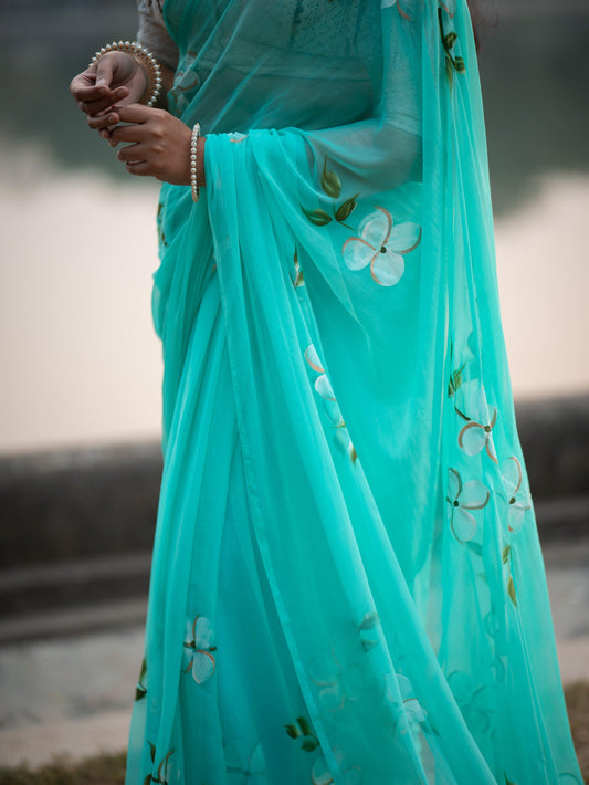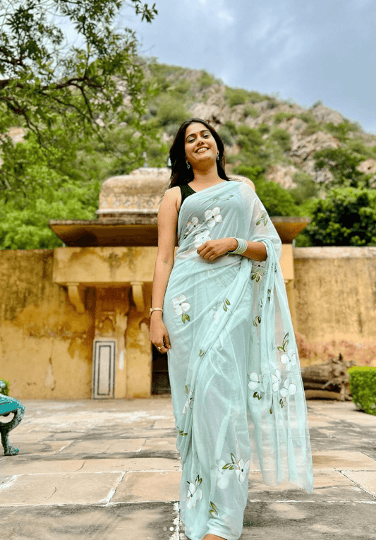 Step into a world of vibrant elegance with Vasaka's Rangeen Collection! Hand-painted on lightweight chiffon, these sarees are designed to bring color and artistry to life with every drape. πΌβ¨