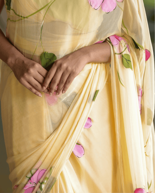 Gulabi Dreams : Baby Pink Handpainted Chiffon Saree