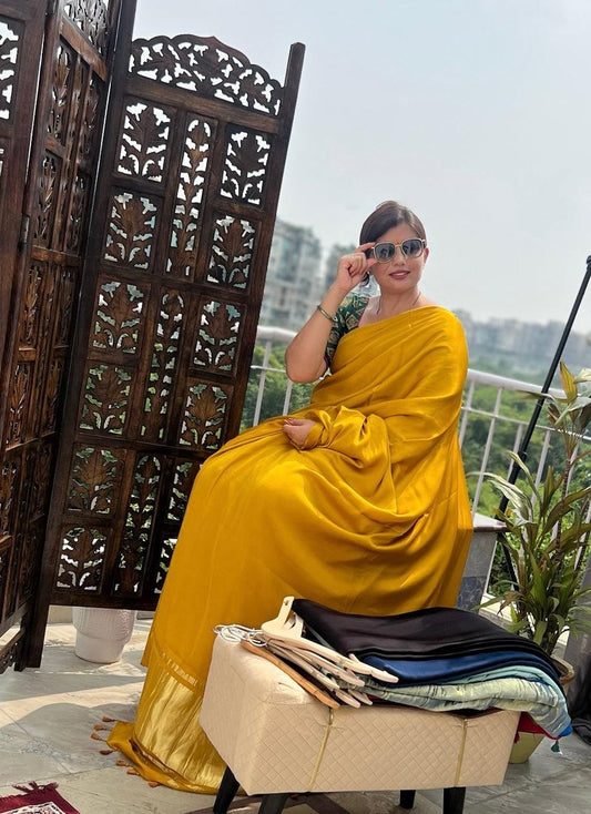 Yellow Colour Modal Plain Saree With Tissue Pallu