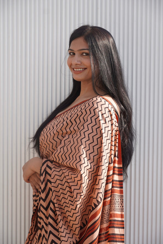 KRITIKA_Zig Zag Stripe Bagru HBP Chanderi Cotton Silk Saree
